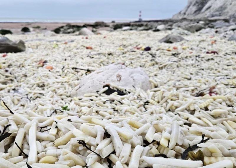 Пляжі на південному сході Англії вкрили тисячі кілограмів картоплі фрі та цибулі, що опинилися у воді через втрату контейнерів під час шторму. Контейнеровози загубили вантаж наприкінці 2025 року та на початку січня, і його вміст викинуло на узбережжя Східного Сассексу, повідомляє CNN.